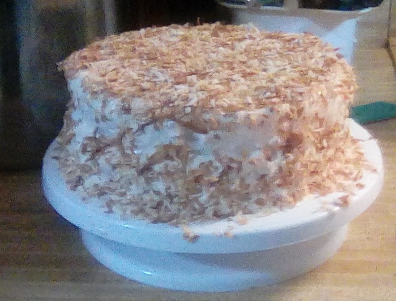 This was my second attempt at a cake. It came outa lot prettier than the first cake. And they were made 3 days apart. One was for my sister’s birthday (this one, the pretty one) and the carrot cake I made for my younger brother. Both had cream cheese frosting and I also had help from my mom with this one. I don’t always need her help, but with this cake just her presence was helpful. 😊